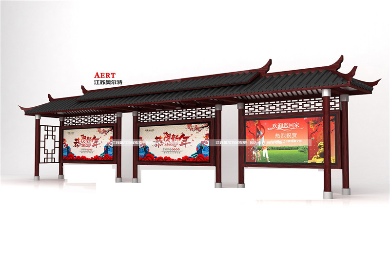 在根據特別的地域像在具有特色的旅游景區 歷史文化名城(南京、西安、開封、洛陽、杭州等地,做為古代名都,其歷史文化底蘊足)來量身定做仿古候車亭這樣可以更好的融入城市之中.江蘇奧爾特候車亭廠家作為江蘇宿遷地區專業研發生產候車亭的廠家,擁有專業創意設計團隊,善于挖掘城市地域文化特色,為城市定制適合的候車亭。